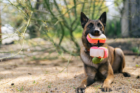 P.L.A.Y. Montreal Munchies Squeaky Plush Dog toys, Pooch-tine
