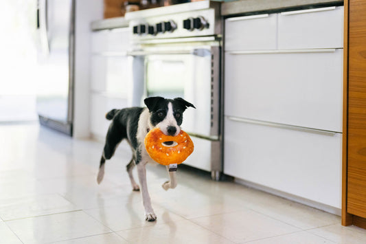P.L.A.Y. Montreal Munchies Squeaky Plush Dog toys, Montreal Bagel