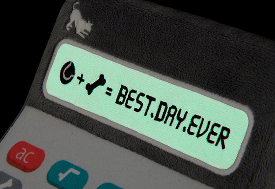 The Doggie Digits Calculator will be your brainy pup's best companion all day and night, thanks to the glow-in-the-dark display, a custom oversized squeaker and crinkler!