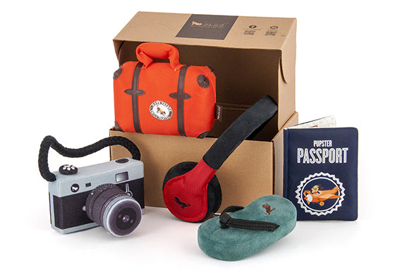 Your pawrents have now officially run out excuses for not bringing you along on holidays, with your own Passport, Suitcase, Camera, Sandal and Headphones.