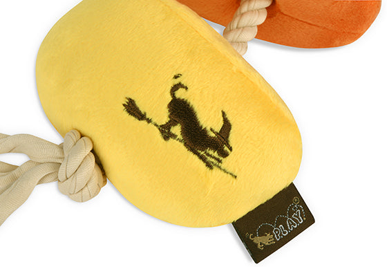 Like Dracula lost his set of false teeth. Into the paws (and mouth!) of your furry one. Show off a set of pearly white that squeaks and crinkles! Insert treats for added fun!