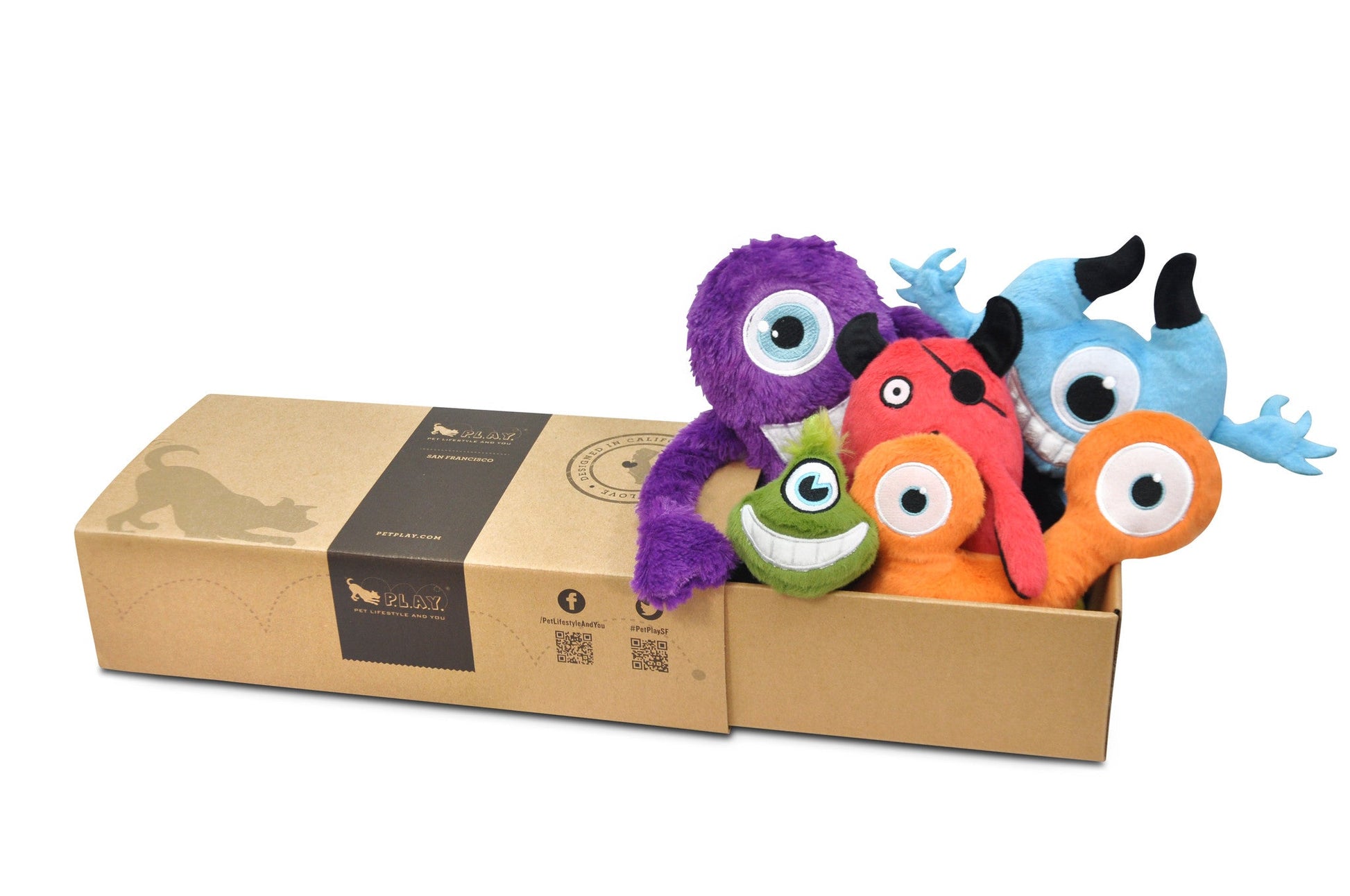 Meet the monsters pack! But afraid not. Inside of these furry monsters is just a squeaky!