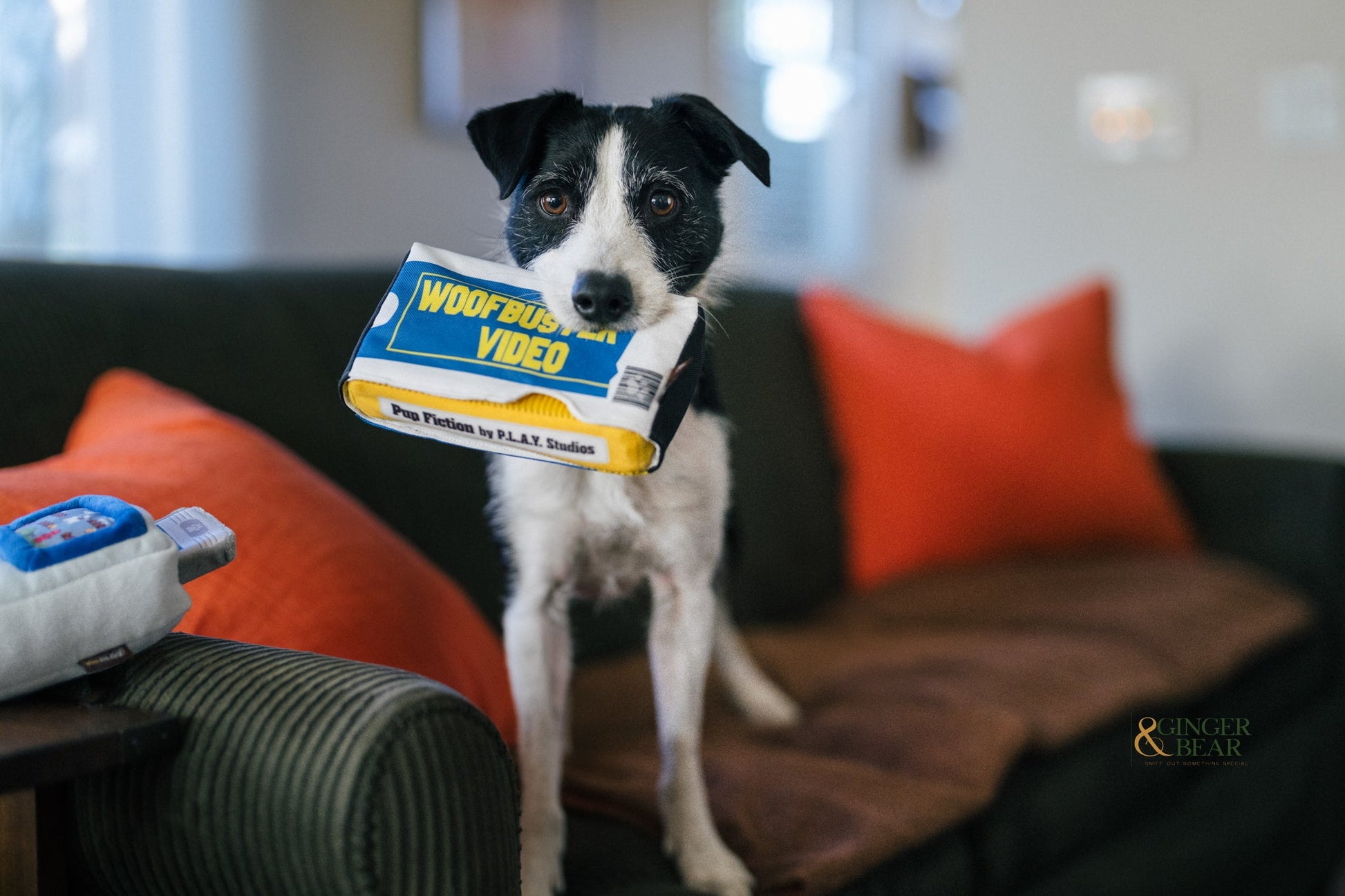 Movie night, pop in your favourite movie. Pup-fiction perhaps. Our all-time favourite comes with a super-sized squeaker and crinkly tape sleeve.