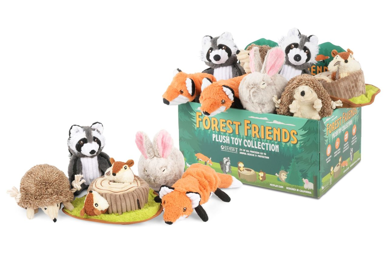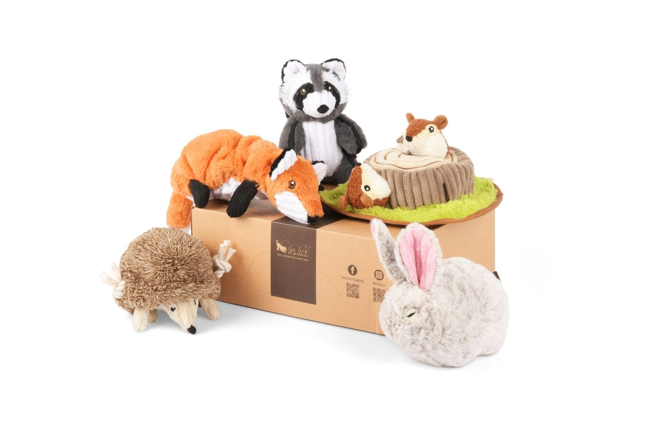 Embark on a playful journey with P.L.A.Y.’s Forest Friends dog toy collection. Featuring our favorite furry critters – a Bunny, Fox, Hedgehog, Raccoon, and Chipmunks. Go on a whimsical pursuit of these forest friends, and decide if they are really friend or foe.