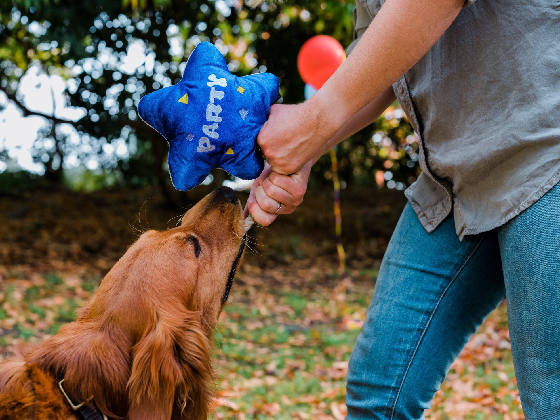 Celebrate the best day ever and never fear the balloon popping or floating away. To make the day more special, have a squeaky, crinkly balloon that comes with a t-shirt rope for the game of tug.