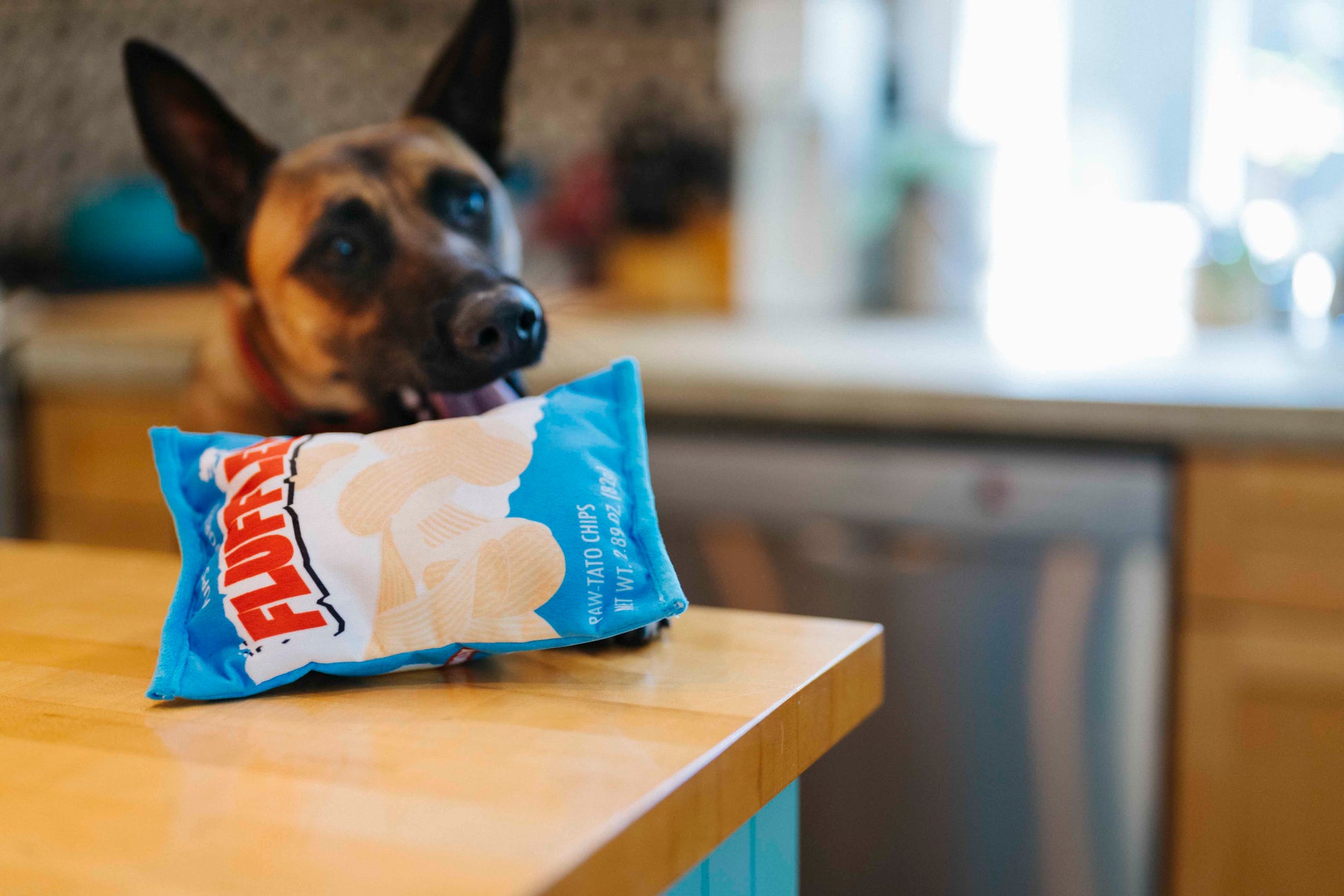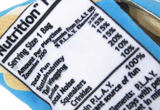 P.L.A.Y. Snack Attack Squeaky Plush Dog toys, Fluffles Chips