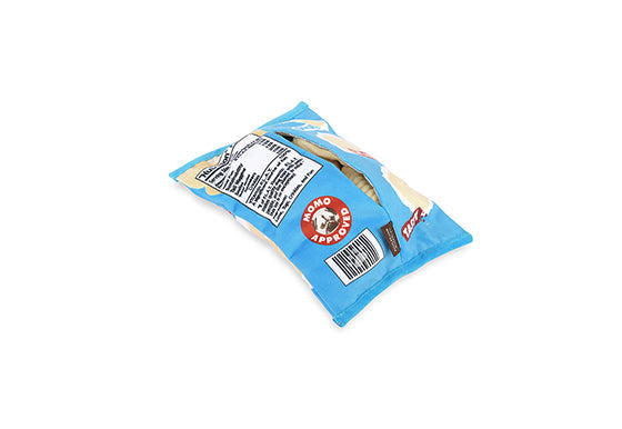 Who can resist a bag of chips? Not us! The crinkly sound of the bag entices the most strong-willed. Open the bag and you get a string of squeaky, crinkly, crinkle cut chips on a bungee strap! No salt but lots of noisy, attention-seeking fun!