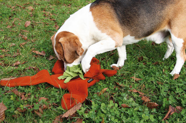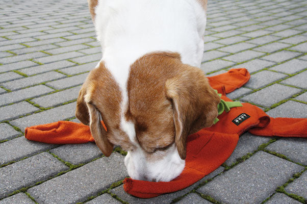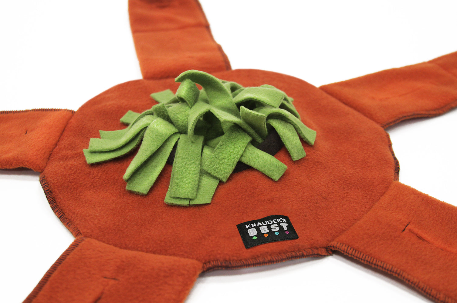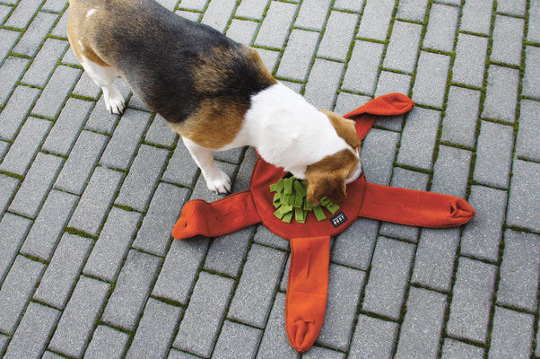 The Sniff Star is designed with flexible “arms” in addition to the fan-favourite Sniffer Lawn right in the middle of the SniffStar. Treats can be hidden in pockets of the 'arms' as well as 'grass' on Sniff Lawn. Tuck the arms into the star centre, to result in a 'dumpling' shape search or fetch toy! Tie the arms to one another and leave them for your dog to unravel! Only limited by your imagination, SniffMaster is a 'nose'-bloggling puzzle toy to hide treats and entertain your dog. Start simple and level up to keep your dog interested.
